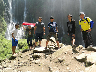 berfoto bersama dengan backgrounda tumpak sewu